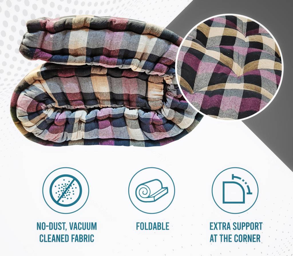 Experience unparalleled comfort with the Drokona Cotton Mattress, a venture of legacy Anand Textile. Designed for those who prioritize quality sleep and eco-friendly materials, this mattress is made with 100% recycled cotton filling and a breathable fabric cover. It offers superior support, keeping you cool in summer and warm in winter. Available in single, double, and king sizes, Drokona ensures you find the perfect fit for your needs. Expertly crafted to balance firmness and plushness, it supports your back and aligns your spine for restful sleep. Ideal for homes, hostels, and guest beds, it's lightweight and easy to handle, making it versatile for various uses. With anti-allergenic properties, it's suitable for those with sensitive skin or allergies. Whether you're searching for a king-size mattress, double bed mattress, or a high-quality foam mattress alternative, Drokona offers affordable luxury without compromising on quality. Built with durable, long-lasting materials, this mattress is designed to withstand daily use while maintaining its shape and comfort.
