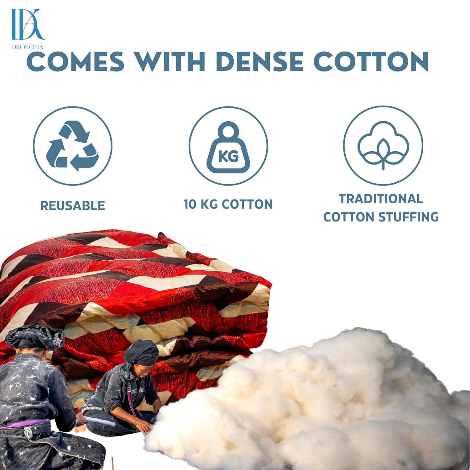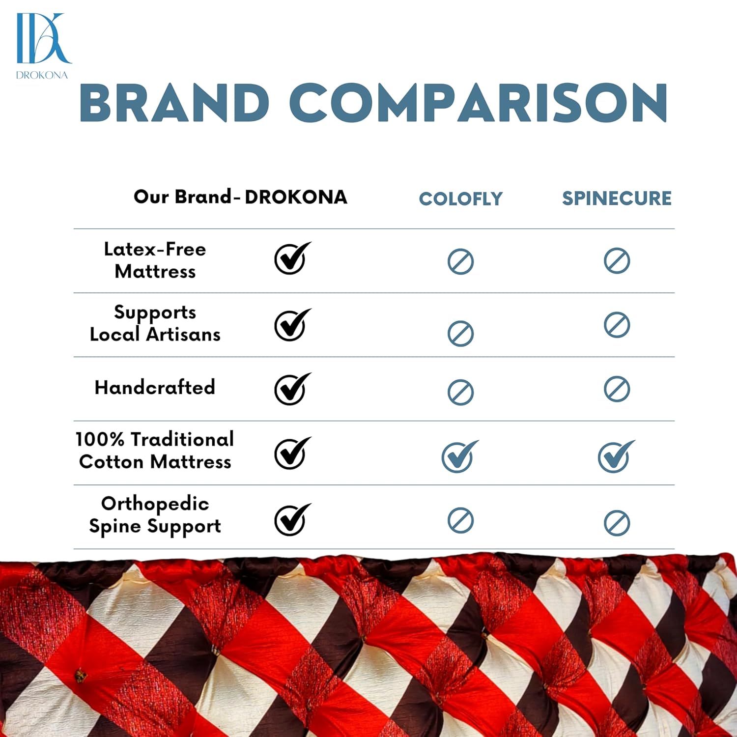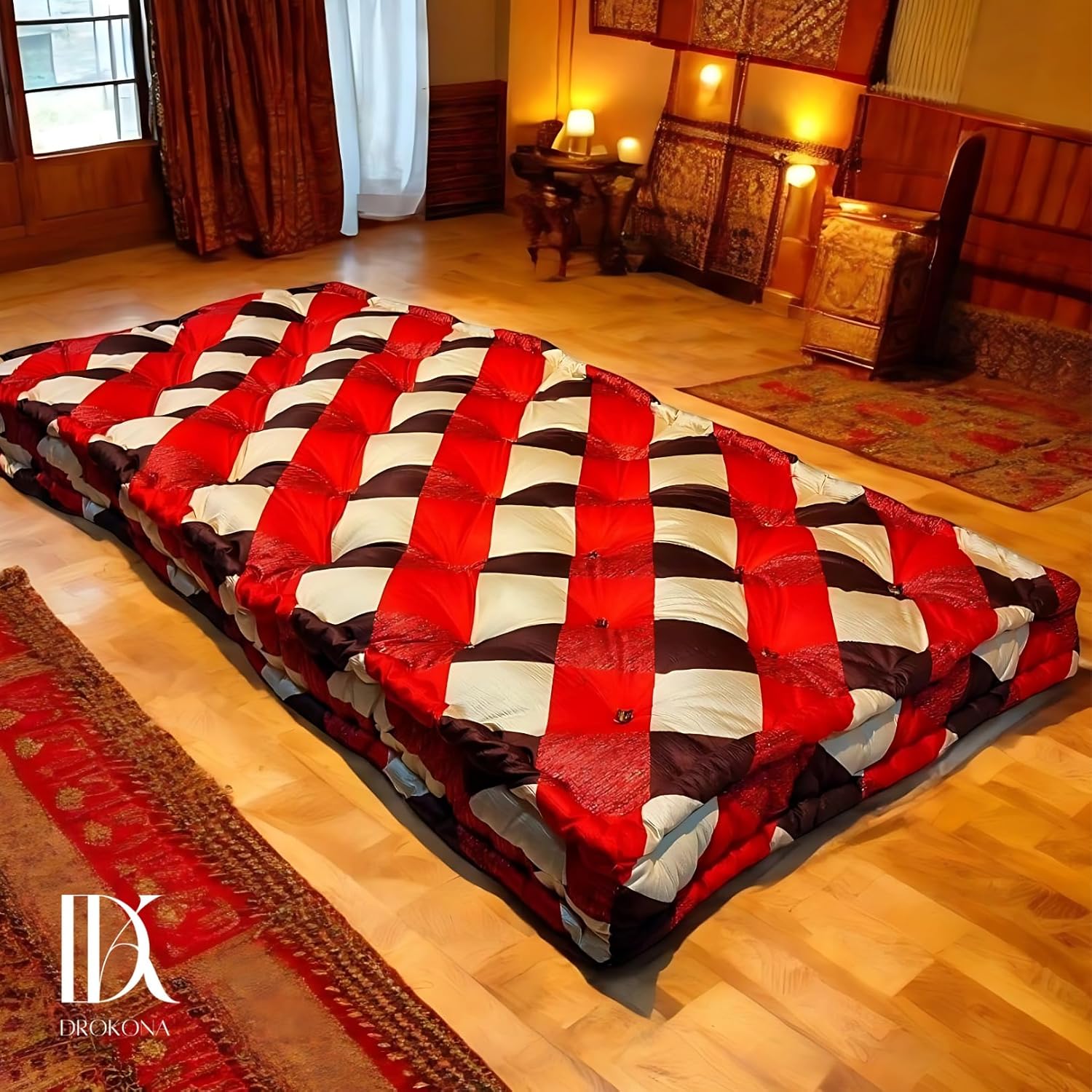 Drokona CloudRest Scarlet Dream Soft Cotton Filled Quilt Mattress Gadda Soft & Reversible, Pure Cotton Fabric, Firm Gadda for Floor & Bed (Scarlet)